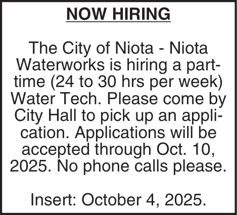 Oct 04, 2025. Niota Waterworks Administration Jobs from East Tennessee Jobs
