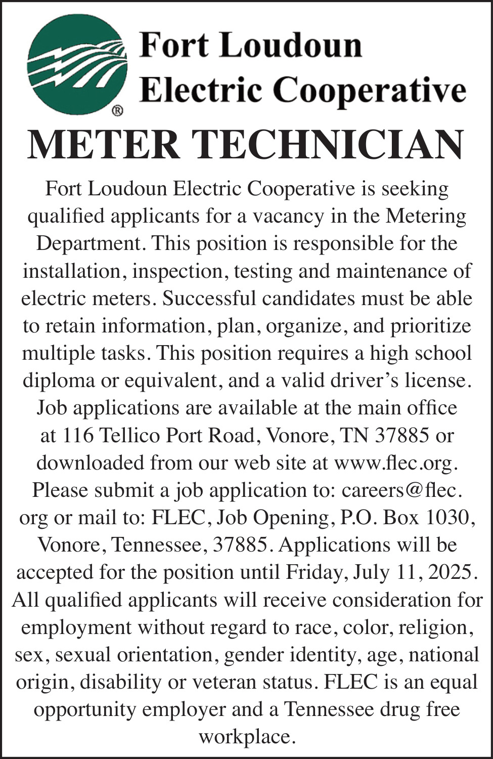 Dec 03, 2025. Fort Loudoun Electric Cooperative Laborer Jobs from East Tennessee Jobs