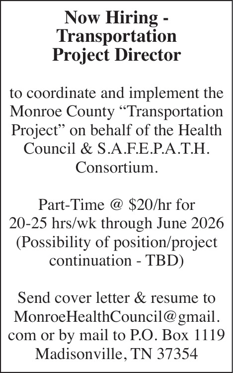 Jan 07, 2026. Monroe County Health Council Administration Jobs from East Tennessee Jobs