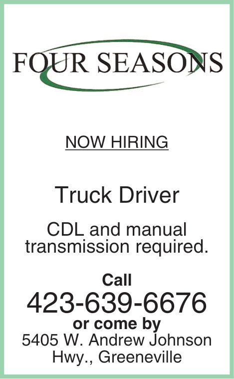 Jan 24, 2026. Four Seasons Inc. Drivers Jobs from East Tennessee Jobs