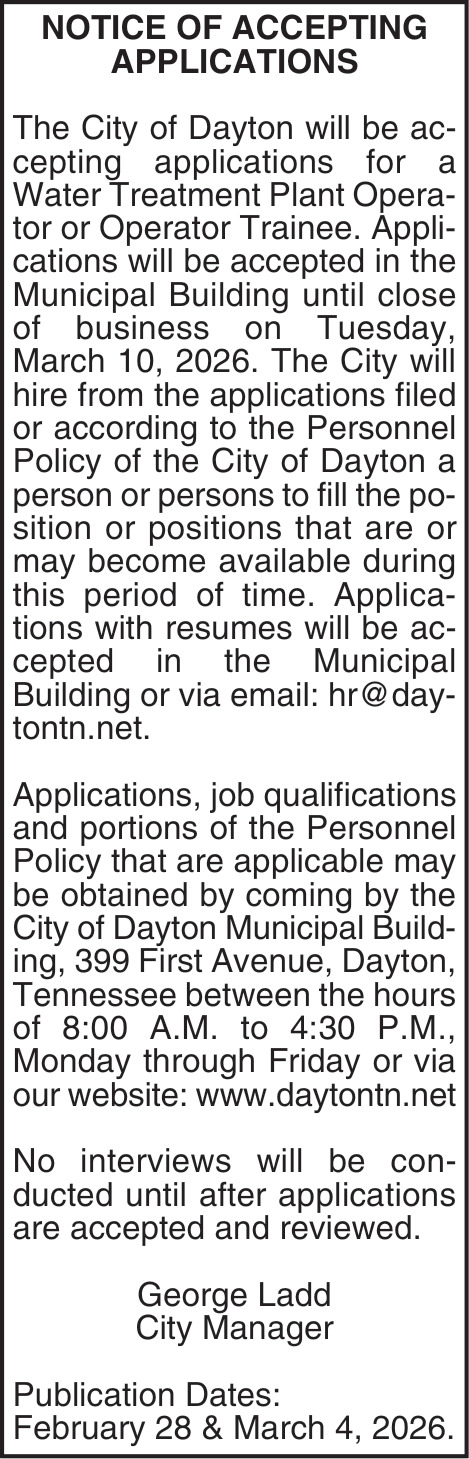 Jobs for Dayton City in Dayton, TN