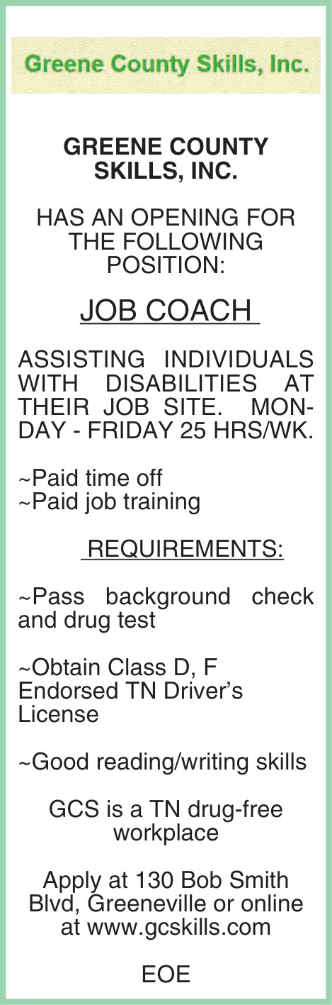 Mar 13, 2026. Greene County Skills, Inc. Coach Jobs from East Tennessee Jobs