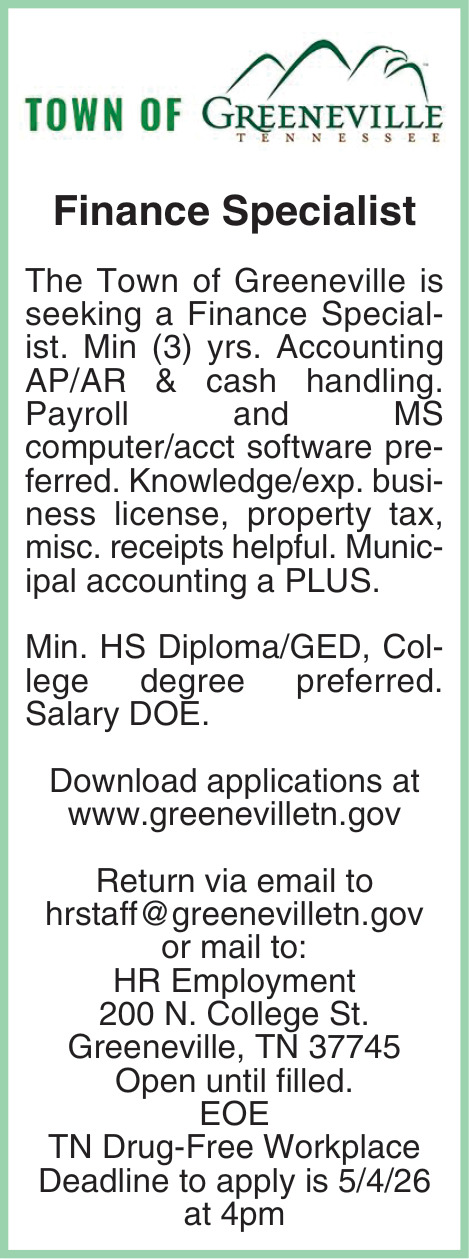 Finance Specialist Jobs Opportunities in Greeneville, TN